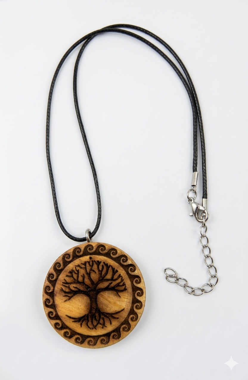 Collar Medallón Árbol de la Vida Madera Grabado Láser