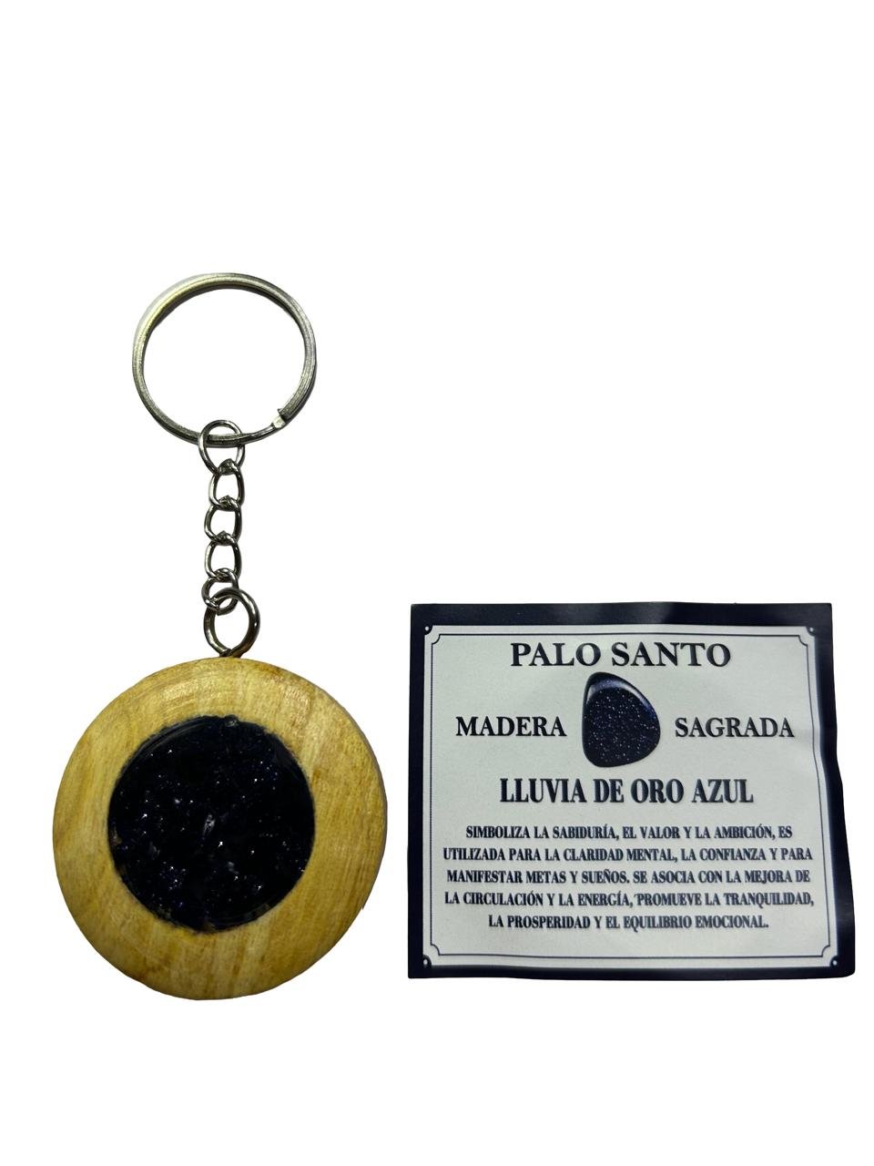 Este llavero artesanal de madera sagrada de Palo Santo con Lluvia de Oro Azul es un amuleto de motivación y éxito que ayuda a alcanzar metas y atraer abundancia, destacando por sus destellos brillantes que simbolizan la luz en la oscuridad y brindan autoconfianza y vitalidad.